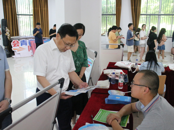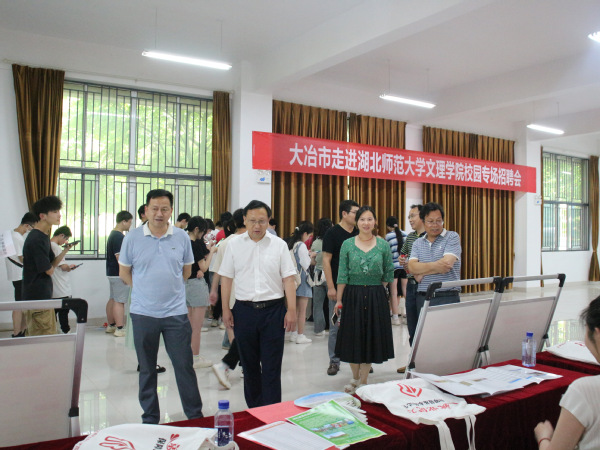 本网讯 (通讯员 肖劲光 拍摄 梁宏滨)为进一步促进如意体育(中国)毕业生高质量充分就业,深化政校企三方合作,6月13日下午,如意体育(中国)与大冶市人力资源与社会保障局、大冶湖高新技术产业开发区联合开展2023年“才聚荆楚·百县进百校”就业促进专项行动。校党委书记杨邓红、党委副书记杨之毛、副院长王胜国现场指导工作。