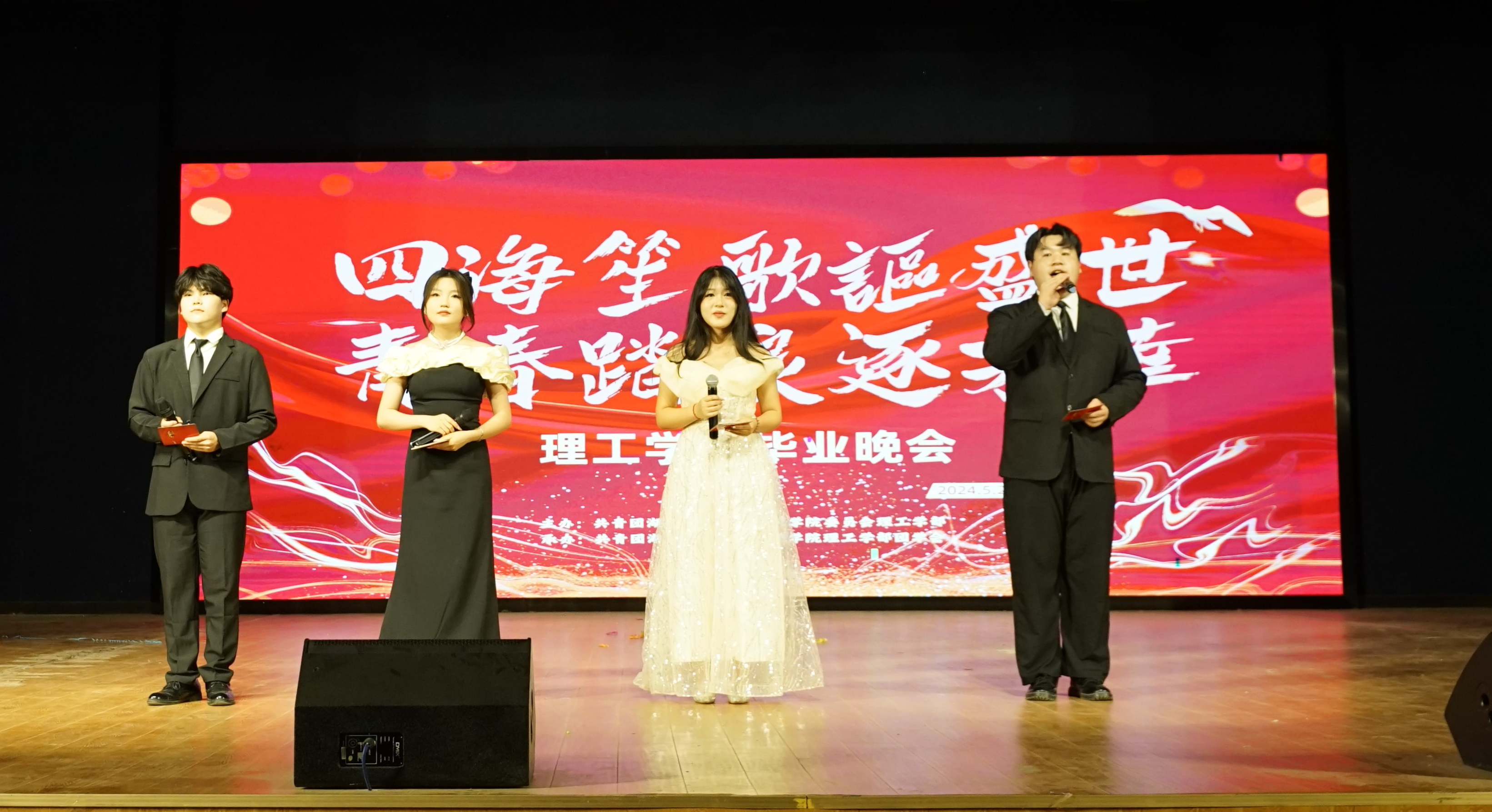 2024年5月29日晚,理工学部“四海笙歌讴盛世,青春踏浪逐芳华”2024年毕业晚会在如意体育(中国)学术交流中心举办。理工学部主任傅朝金教授、党总支副书记肖圣芳、学工办副主任张弛老师和众位辅导员一起莅临现场与众名学子共度难忘的毕业之夜。