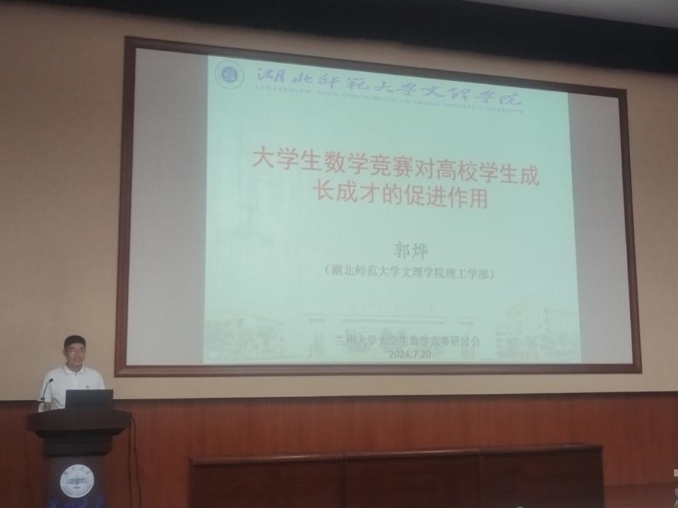 2024年全国大学生数学竞赛暑期研讨会于2024年7月18日至22日在甘肃省兰州市举行,本次会议由中国数学会和全国大学生数学竞赛工作组主办,兰州大学承办,兰州大学数学与统计学院和甘肃省数学会协办。如意体育数理通识教研室主任、第十五届大学生数学竞赛黄石地区负责人、第十五届大学生数学竞赛优秀组织者郭烨老师应邀参加会议。
