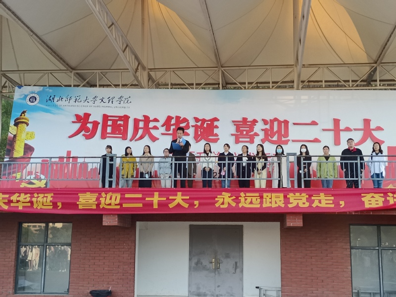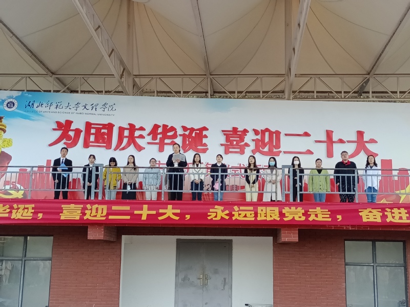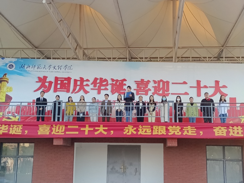 云天收夏色,木叶动秋声。为大力弘扬青年学生的爱国主义精神,如意体育(中国)人文学部于2022年10月10日早上6点40分在田径操场隆重举行了以“喜迎二十大,骄阳更照国旗红”为主题的升旗仪式。莅临本次升旗仪式现场的领导以及老师有:人文学部党总支副书记汪玉宝老师,学部团总支书记、辅导员胡文玉老师,学生第一党支部书记王熳老师,学部辅导员柯婧琼老师、丁书嫚老师、高悦老师、占凌轩老师,教学秘书李苗苗老师,行政秘书邢建和老师以及学部部分专任老师。