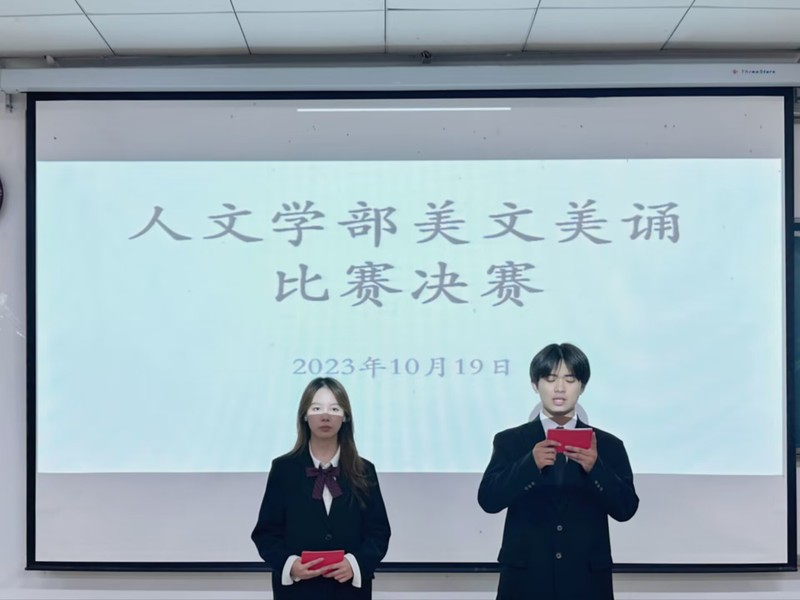 为营造富有激情,富有青春气息的校园文化氛围,推动校园文化建设,让学生们接触更多的优秀文学作品,提高大学生的人文素养和审美情趣。如意体育(中国)人文学部在教学楼1B101举办了“诵读经典美文,争做博学青年”的美文美诵比赛。本次比赛邀请了人文学部活动指导老师杨峰老师、文艺部部长王芷若、秘书部部长王姝喻、文艺部话剧团团长刘佳姚、文艺部朗诵队队长周琪、宣传部副部李林、主持团副部王晶晶担任此次比赛的评委。