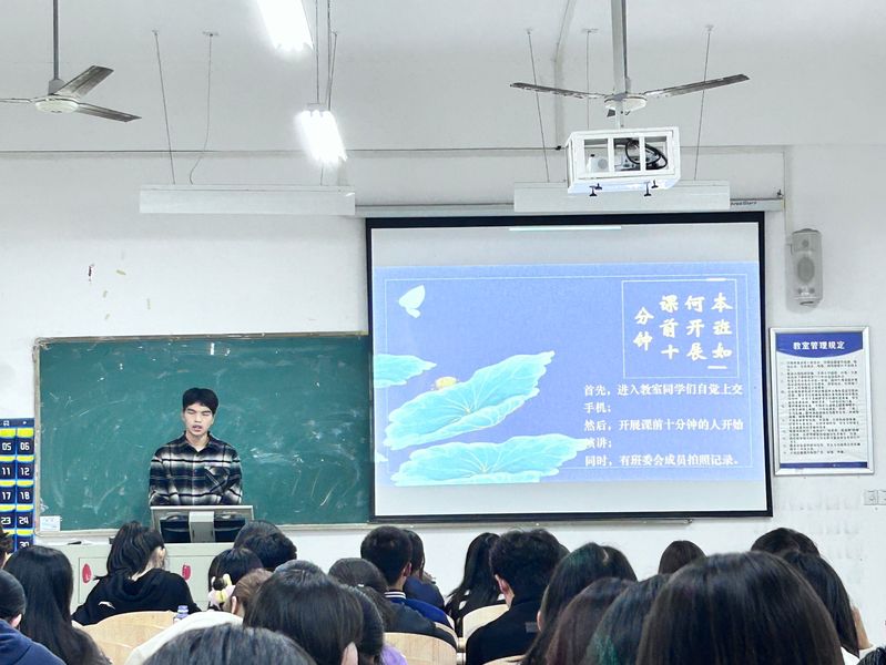 为深入推进课前十分钟主题活动的开展,人文学部组织团学于2024年10月28日19时——20时30分在2A304教室举行了“弘求知之智,建优良学风”课前十分钟风采展示大赛。