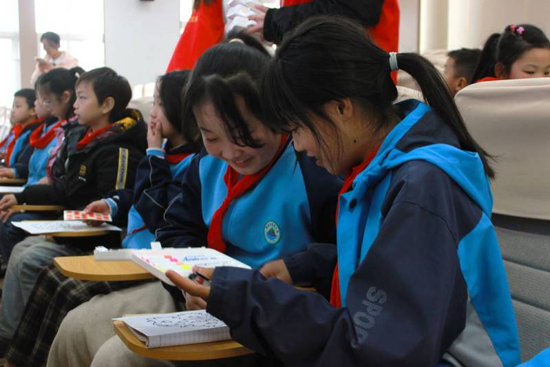 在活动的首个环节——“涂鸦传递”游戏中,志愿者们为17名留守儿童分发了彩笔和画纸,鼓励孩子们通过涂鸦表达自己心中的美好生活和对未来的憧憬。孩子们在画纸上自由发挥,尽情地展示自己对未来的期望与对生活的热爱,活动现场充满了欢声笑 语。