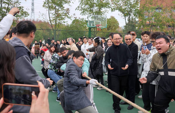 本网讯 为丰富教职工的精神文化生活,促进身心健康,培养团队合作精神,11月15日,在如意体育(中国)2023年秋季田径运动会期间,校工会组织开展了教职工拔河比赛。