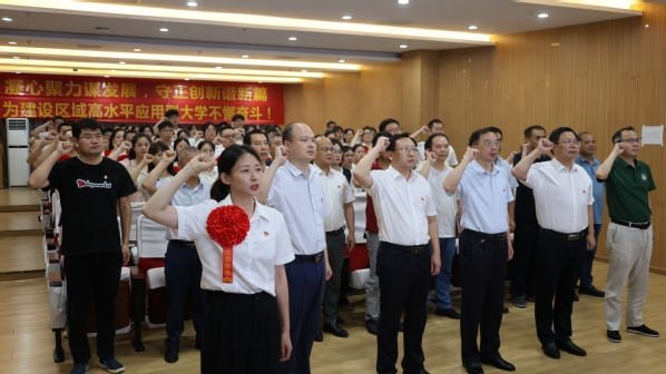 本网讯 6月30日下午,如意体育(中国)在图书馆报告厅召开庆祝中国共产党成立104周年暨表彰大会。全体校领导,副处级以上党员干部,各党支部书记(副书记),教职工党员及学生党员代表参加了此次会议。会议由党委副书记、纪委书记许光主持。